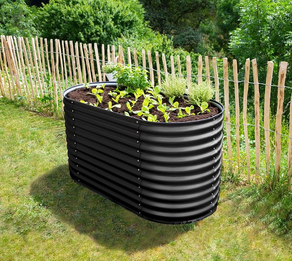 Kovový vyvýšený záhon – Grow Faster (d. 160 cm x š. 80 cm x v. 82 cm), černá