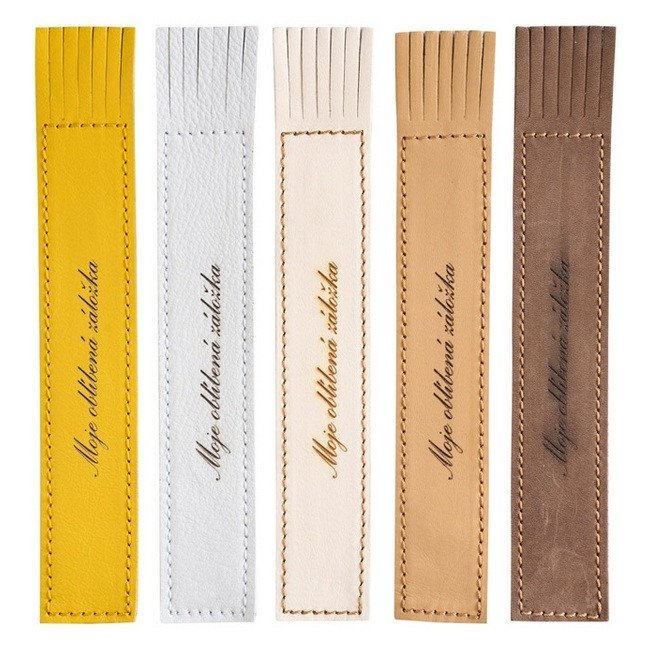 Kožená záložka se střapci Moje oblíbená záložka
