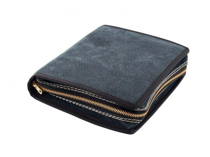 Přírodní kůže, kovový zip, ruční práce. Vhodné pro knihy o maximálních rozměrech: Výška: 22 cm, Šířka (součet 2x šířka + hřbet): 40 cm