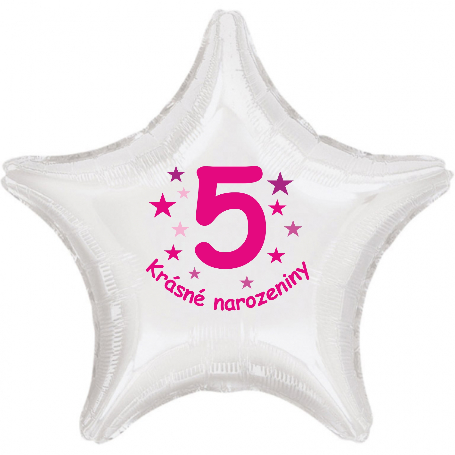 Krásné 5. narozeniny fóliový balónek hvězda pro holky Narozeninové balónky na oslavu 5. narozenin okouzlí malou oslavenkyni i její kamarádky a vytvoří nezapomenutelnou atmosféru. Fóliové balónky mají samouzavíratelný ventil, takže po nafouknutí se samy uzavřou a helium ani vzduch již unikat nebude. Nafukovat můžete vzduchem s použitím ruční pumpy popř. můžete použít brčko na pití. Dětské foliové balónky nafouknuté vzduchem vydrží v nezměněném tvaru celé týdny. Pokud chcete překvapit oslavence létajícími balónky, je nutné použít na nafouknutí helium. Balónky nafouknuté heliem vydrží létat 3-7 cní, přičemž dobu létání ovlivňuje okolní teplota a objem samotného balónku. Slavnostní výzdobu oživí hotové sady balónků. Chcete připravit dokonalou párty? Vyzkoušejte balónky s potiskem jména oslavence anebo balónky s fotkou oslavence. Velikost nabízených balónků je 42 cm a objem 13 litrů.