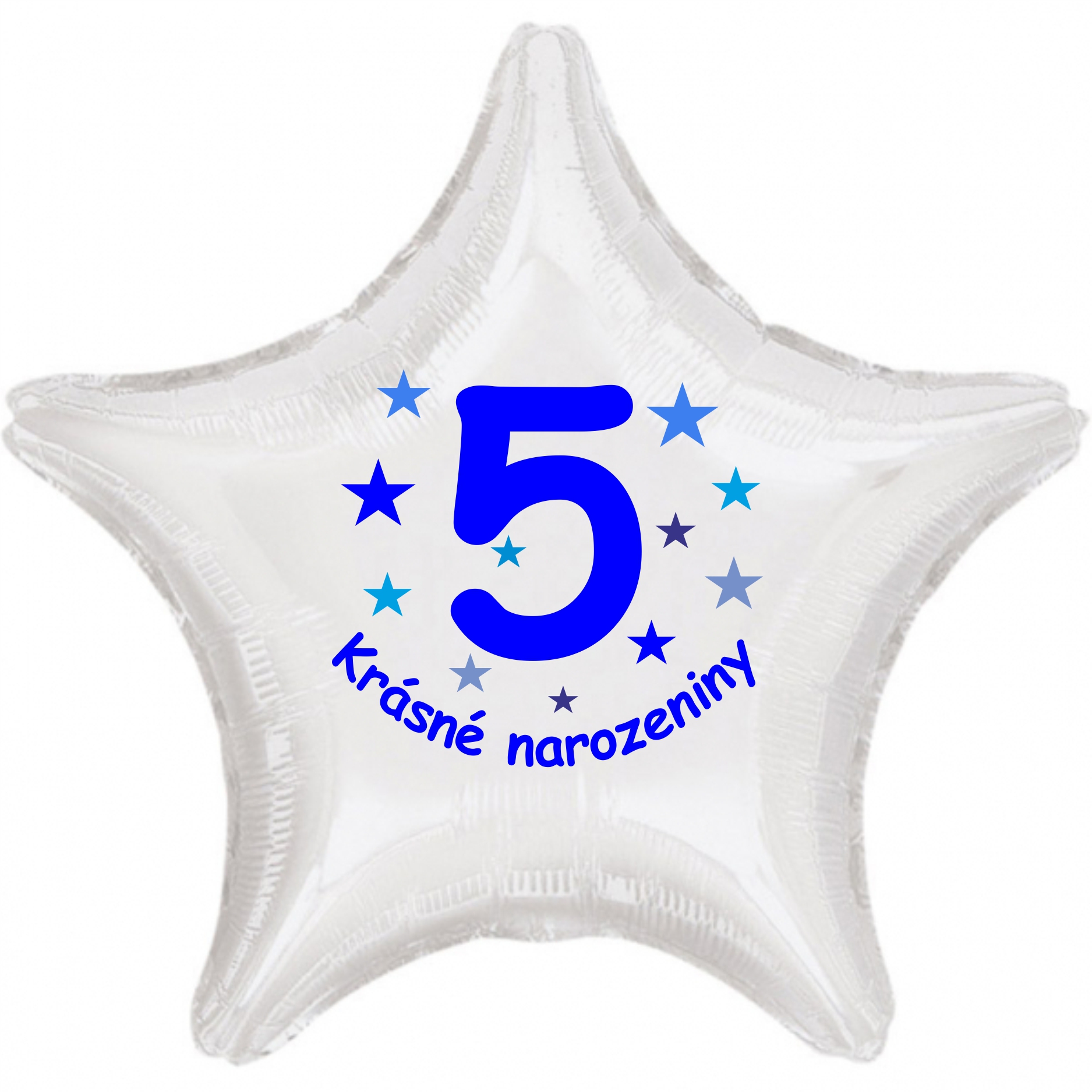 Krásné 5. narozeniny fóliový balónek hvězda pro kluky Narozeninové balónky okouzlí malého oslavence i hosty a vytvoří nezapomenutelnou atmosféru. Fóliové balónky mají samouzavíratelný ventil, takže po nafouknutí se samy uzavřou a helium ani vzduch již unikat nebude. Nafukovat můžete vzduchem s použitím ruční pumpy popř. můžete použít brčko na pití. Dětské foliové balónky nafouknuté vzduchem vydrží v nezměněném tvaru celé týdny. Pokud chcete překvapit oslavence létajícími balónky, je nutné použít na nafouknutí helium. Balónky nafouknuté heliem vydrží létat 3-7 cní, přičemž dobu létání ovlivňuje okolní teplota a objem samotného balónku. Slavnostní výzdobu oživí hotové sady balónků. Chcete připravit dokonalou párty? Vyzkoušejte balónky s potiskem jména oslavence anebo balónky s fotkou oslavence. Velikost nabízených balónků je 42 cm a objem 13 litrů.