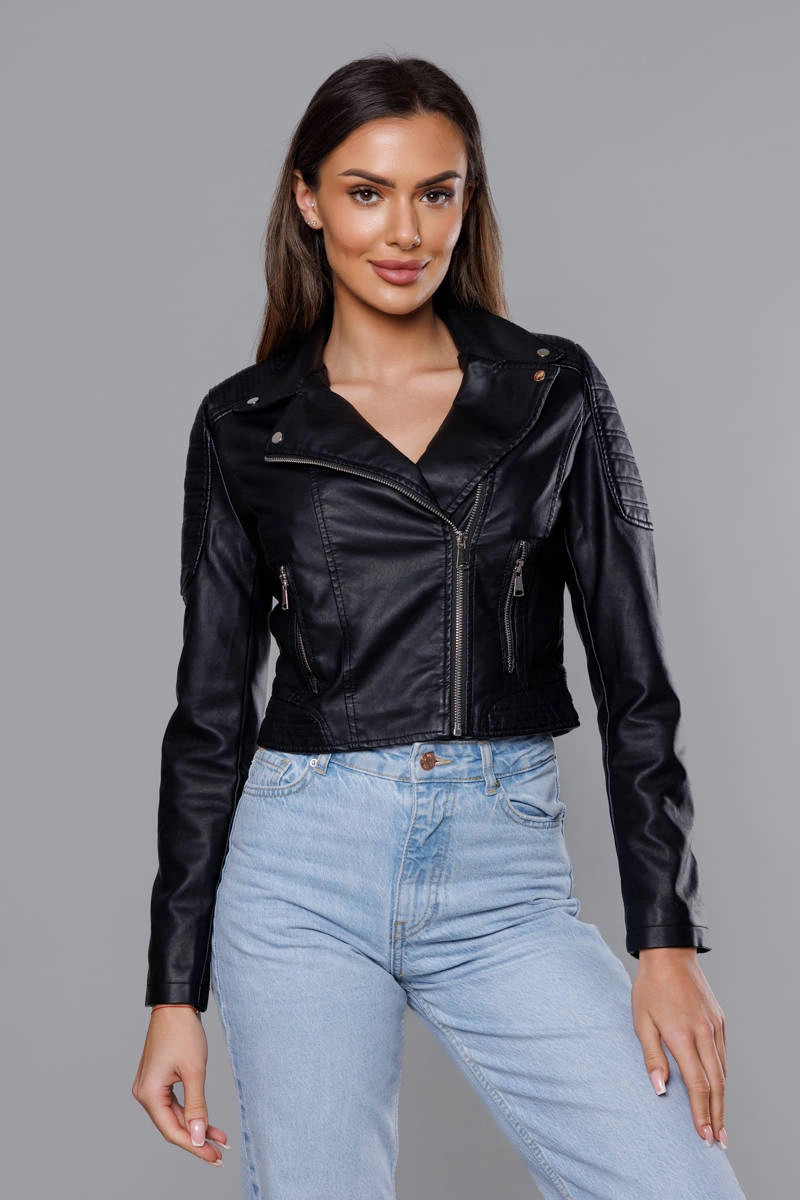 Krátká černá bunda ramoneska z ekologické kůže (11Z8028) odstíny černé S (36)