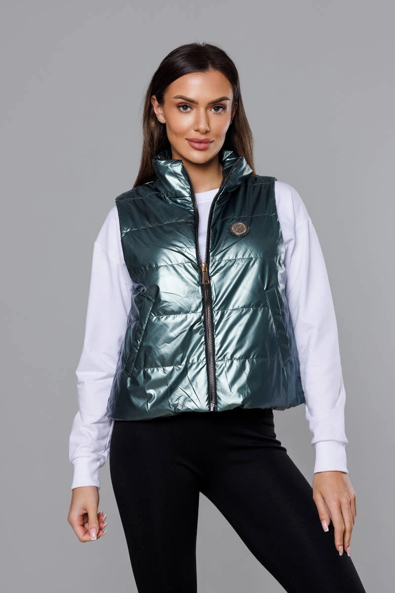 Krátká zelená dámská vesta se stojáčkem (B8152-10) odstíny zelené L (40)