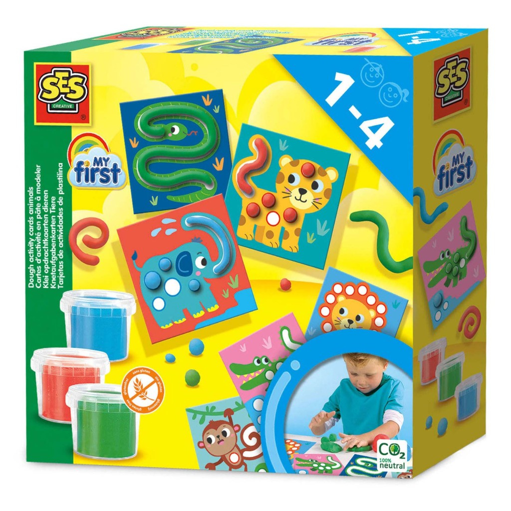 Tato sada předlohových karet je ideální pro ty nejmenší, kteří se učí modelovat s modelínou. Karty obsahují jednoduché a názorné pokyny krok za krokem pro vytvoření roztomilých zvířátek. Sada obsahuje 3 kelímky se super měkkou modelínou a 90g – červená, zelená a modrá. 6 kartiček se zvířátky.Tyto karty slouží jako podklady – dítě na ně doplňuje modelínu, aby zvířátko dokončilo (např. doplní tečky na leoparda nebo tělo hada).