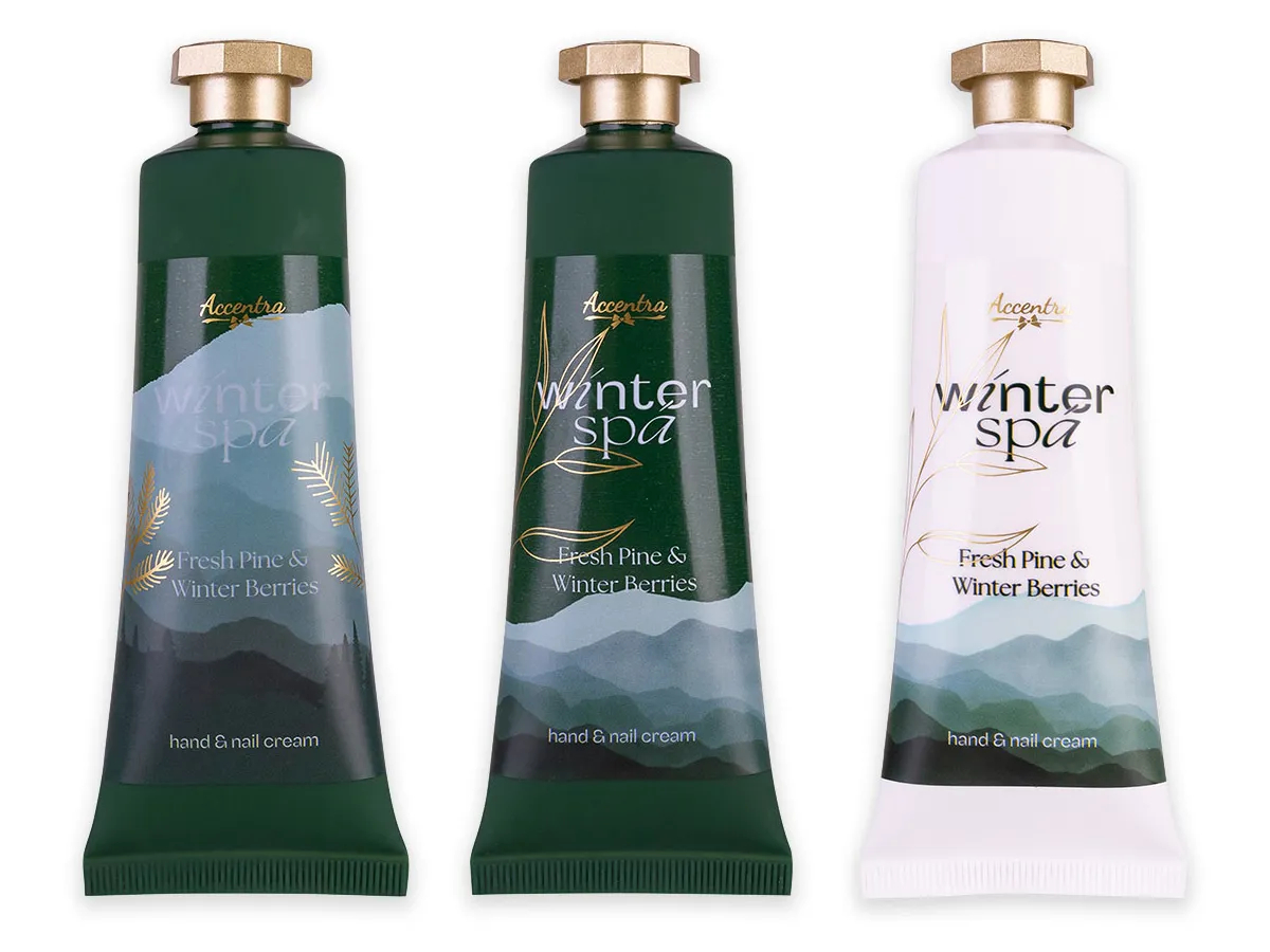 KRÉM na ruce a nehty 60ml v tubě, 3 motivy/ 1 vůně. Vůně: borovice a zimní bobule