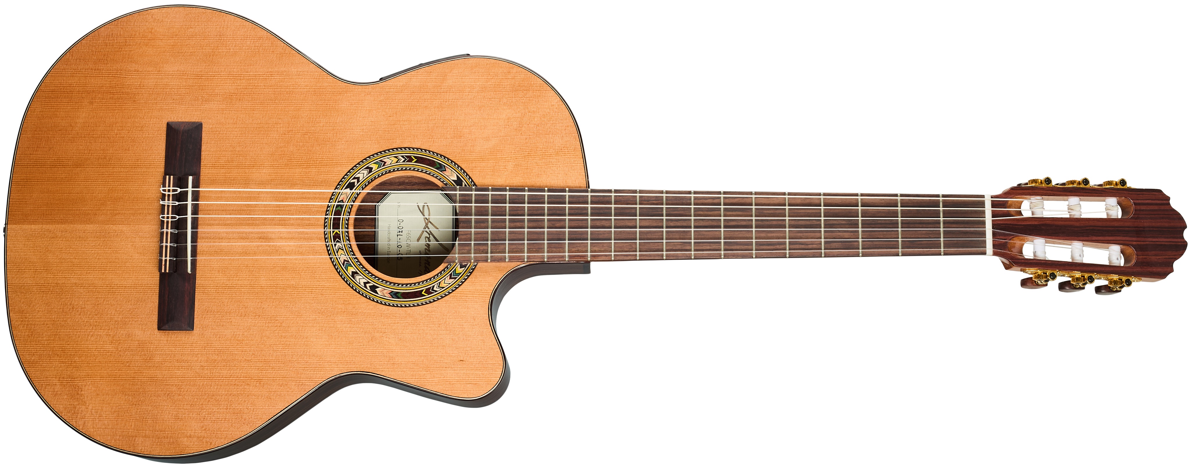 Klasická elektroakustická kytara Dostaňte zvuk nylonových strun na koncertní pódia s klasickou elektroakustickou kytarou Fiesta TLR. Jedná se o nástroj zavedené evropské značky Kremona se štíhlým (thinline) polomasivním tělem zhotoveným z masivu cedru (přední deska) a palisandru (zadní deska a luby). Kytara tak nabízí pěkný znělý zvuk i bez ozvučení. K mahagonovému krku je přilepen palisandrový hmatník osazený devatenácti pražci. Dohmat na vyšších polohách