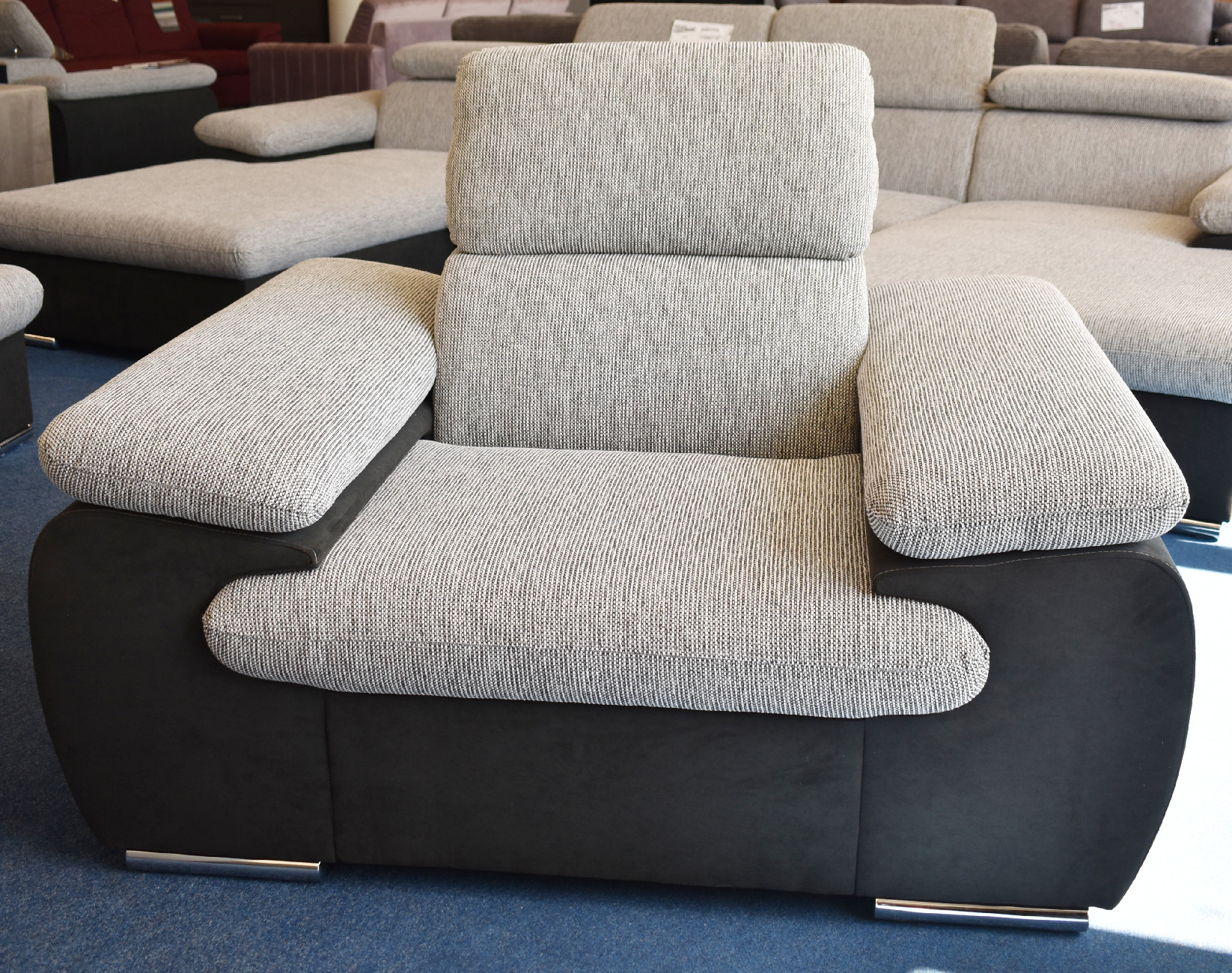 Křeslo Coast Křeslo Coast, ve stejném stylu jako stejnojmenná sedací souprava, se stane doplňkem vašeho obývacího pokoje a bude se hodit ke všem výrazným i klasickým odstínům. Splní vaše požadavky na funkcionalitu a kvalitu. • Vlastnosti křesla Coast Kostra křesla Kostru tvoří tvrdé a měkké dřevo. Výplň sedáku Na výplň jsou použity pružiny Faliste a PUR pěna. Nožičky Křeslo je postavené na chromových nožičkách. Popisy potahových látek Potahová látka SumatraPotahová látka Sumatra se vyznačuje svou nahrubo tkanou texturou. Je odolná vůči slunečnímu záření, díky čemuž si barva materiálu zachovává svou sytost a barevnost. Potahová látka TrendPotahová látka Trend má semišový povrch, který je jemný na dotek. Řadí se mezi velurové tkaniny. Vyznačuje se krásnou barevností a odolností. Sumatra 6 světlá látka sedák, opěrák, otoman, záhlavníky, područky. Jedná se o hrubší, režnou a žíhanou látku se složením 100% POLYESTER, 235 g/m2 Trend 17 tmavší látka na fotce: korpus, boky - hladká, semišová, příjemná na dotyk, jednolitá se složením 90% POLYESTER, 10% NYLON, 275 g/m2 • Rozměry křesla Coast 130 cm celková šířka 56 cm hloubka sedadla 96 cm výška se zvednutou opěrkou hlavy 75 cm výška s položenou opěrkou hlavy 60 cm šířka sedadla 100 cm celková hloubka 40 - 57 cm výška opěradla 40 cm výška sedu • Sedací sestava CoastSestava nabízí nejen nadčasový design, ale také kvalitu a funkcionalitu.Sedací souprava Coast je dostupná jako sedací souprava do tvaru L i do tvaru U. Díky rozkladu na lůžko, úložnému prostoru a polohovatelným záhlavníkům je ideální pro každodenní odpočinek i pro přespání vašich hostů. Sedací soupravu můžete doplnit o křeslo nebo taburet a vytvořit tak sestavu přesně podle vašich představ.Zobrazit sestavu... •