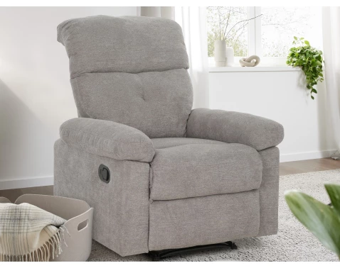 Elegantní křeslo má zaoblené tvary, které připomínají optiku nadýchaných polštářů. Tato křeslo je očalouněno látkou v barvě šedá a nabízí komfortně měkkoučké sezení. Je vybaveno polohovací funkcí, kdy se sedák promění v pohodlné lehátko pro chvíle domácí pohody a relaxace.