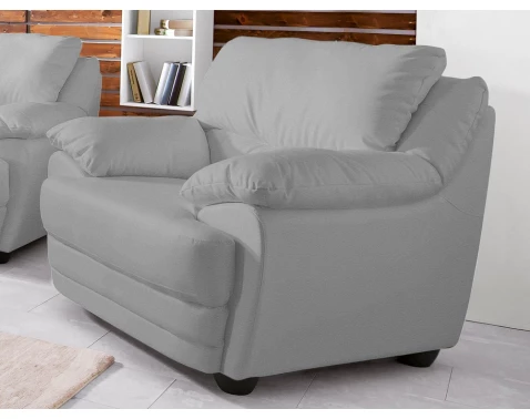 Křeslo Nebolo, světle šedá látka v optice kůže