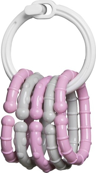 Plastový kroužek s přívěsky pro nejmenší. Hračka miminko okamžitě zaujme a zabaví na dlouhou dobu. V sáčku 13x19x4 cm. Vhodné od 3 měsíců.
