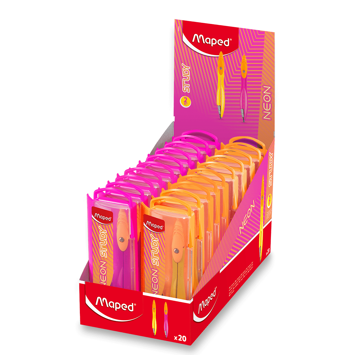 Kovové kružítko Maped Study Neon s rameny má ergonomický úchop. Souprava obsahuje kružítko a balení s tuhou. Zakupte produkt Kružítko Maped Study Neon, mix barev z kategorie Školní potřeby | Rýsovací potřeby | Kružítka od výrobce Maped za cenu 93 Kč.