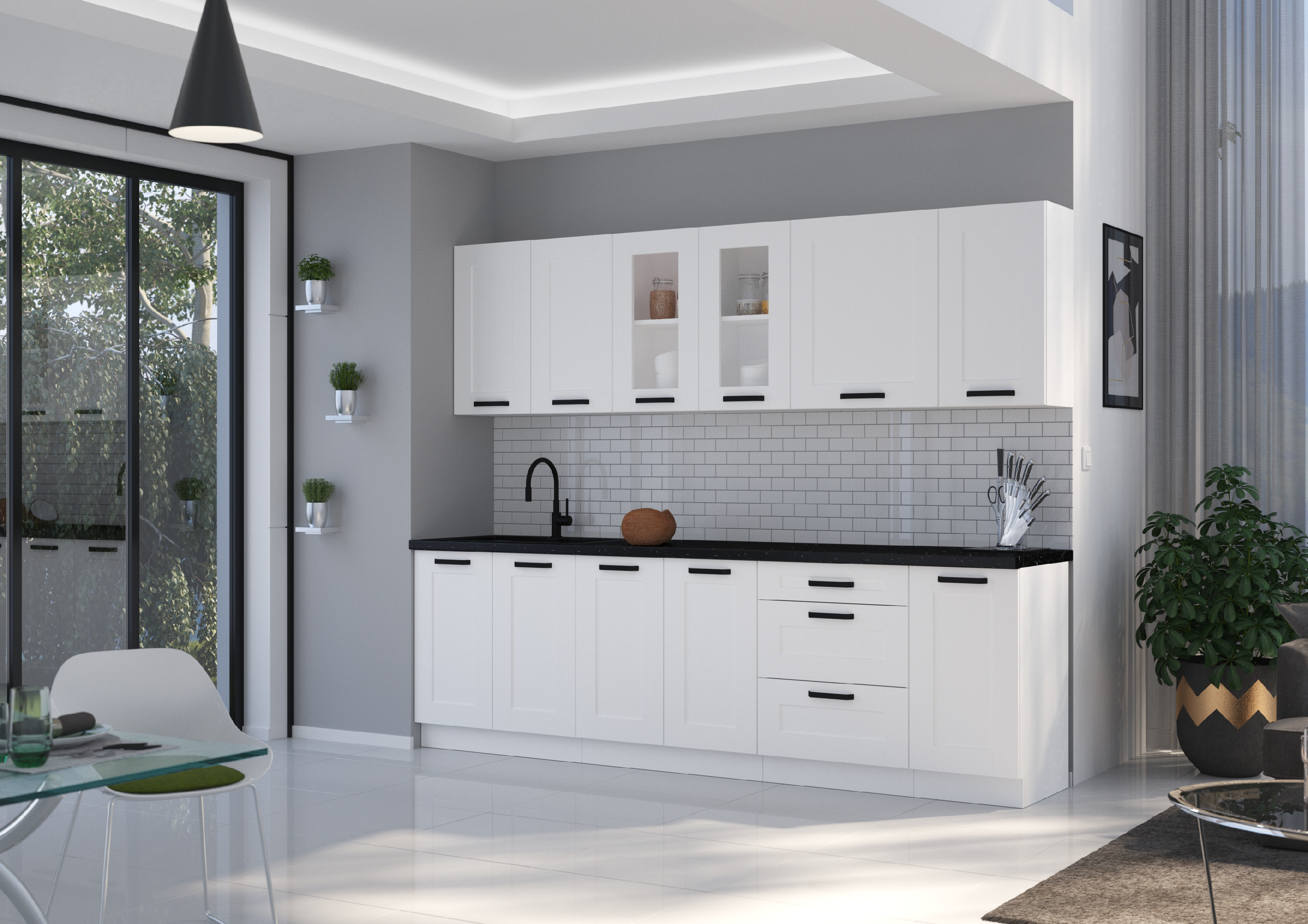 Rovná kuchyňská linka Luna 3 Klasický vzhled v moderním a elegantním pojetí, které si získá vaši pozornost ve všech dostupných variantách. Každé vaření se tak z povinnosti stane radostí a oblíbenou činností. Stylový design a kvalitní materiály zaručují dlouhou životnost a snadnou údržbu. • Barevná varianta kuchyňské linky Luna 3Korpusy, dvířka a čela zásuvek jsou vyrobena v bílé matné barvě. • Vlastnosti kuchyňské linky Luna 3 Korpus a dvířka Korpus je vyroben z laminované desky o síle 16 mm. Dvířka a čela zásuvek Dvířka a čela zásuvek jsou vyrobeny z MDF desek o síle 16 mm. Hrany desek Hrany opatřeny ABS hranou o síle 1 mm nebo dýhou. Úchytky Jednotlivá dvířka a zásuvky se otevírají pomocí kovových úchytek. Tiché dovírání Dvířka a zásuvky jsou opatřeny tichým dovíráním. Vnitřek skříněk Vnitřek skříněk je bílý. • Rozměry kuchyňské linky Luna 3 260 cm celková šířka 71,5 cm výška horních skříněk variabilní celková výška 60 cm hloubka spodních skříněk s pracovní deskou 82 cm výška spodních skříněk 31 cm hloubka horních skříněk Horní skříňky lze umístit do libovolné výšky. • Skříňky použité v této sestavě Horní skříňky2x 40 GS-72 1F (1x prosklená dvířka)1x 40 G-72 1F (1x dvířka)1x 60 G-72 1F (1x dvířka)1x 80 G-72 2F (2x dvířka)Spodní skříňky1x 60 D 3S BB (3x šuplík)1x 40 D 1F BB (1x dvířka)1x 80 D 2F BB (2x dvířka)1x 80 ZL 2F BB (2x dvířka - skříňka pod dřez) • Pracovní desky ke kuchyňské lince Pracovní deska není v ceně, ale je možné si jí dokoupit v libovolné délce a provedení. Potřebný rozměr pracovní desky pro tuto kuchyňskou linku je 260 cm.Pracovní desky • Montážní závěsná lištaMontážní lišta je chytré řešení pro efektivní a snadnou instalaci horních skříněk ve vaší kuchyni nebo jiných prostorách. Nejprve se lišta upevní ke zdi, což zajistí stabilní a rovný základ pro následné zavěšení skříněk. Montážní lišta • Odkazy na příslušenství ke kuchyňským linkámPracovní deskyPříslušenství ke kuchynímKompletní nabídka skříněk ke kuchyňské lince Luna •