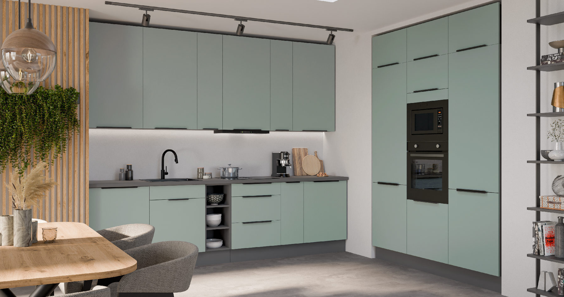 Kuchyňská linka Aria ANT Vlastnosti: Materiál Laminovaná dřevotřísková deska o síle 16 mm Zakončené hrany ABS hrana o síle 1 mm Anti Finger Print Jedná se o speciální povrchovou úpravu, kdy na povrchu dvířek / čel zásuvek nezůstávají otisky prstů. Úchyt Matný kovový černý úchyt Sokl Sokl NENÍ součástí balení - lze doobjednat Nastavitelné nožičky Skříňka stojí na nastavitelných nožičkách: 13,5 - 16 cm Vnitřní barva Vnitřek skříně je bílý Panty / Pojezdy Panty, pojezdy a plynové písty s tlumeným zavíráním • • Barevné kombinace Antracit Korpusy SA - Aquamarine AFM Dvířka a čela zásuvek • Rozměry kuchyňské linky Aria ANT 300 x 180 cm celková šířka 36 cm a 108 cm výška horních skříněk libovolná celková výška 60 cm hloubka spodních skříněk s pracovní deskou 82 cm výška spodních skříněk 31 cm a 57 cm hloubka horních skříněk • Skříňky použité v této kuchyňské sestavě Horní skříňky4x 60 G-108 1F2x 30 G-108 1F3x 60 NAGU-36 1FSpodní skříňky2 x 60 D 1F BB 1 x 60 ZL 1S BB (dřezová)1 x 30 D OTW BB1 x 60 D 3S BB1 x 30 D CARGO BBVysoké skříně 1 x 60 LO-210 2F (pro vestavnou lednici)1 x 60 DPM-210 2F (pro vestavnou troubu a mikrovlnou troubu)1 x 60 DK-210 2F (potravinová skříň) • Sokl ke kuchyňské linceSpodní skříňky stojí na nastavitelných nožičkách, tím pádem není součástí skřínek spodní krycí sokl. Ten je možné dokoupit hned v několika rozměrech. Manipulace s ním je snadná. • Pracovní desky ke kuchyňské lince Pracovní deska není v ceně, ale je možné si jí dokoupit v libovolné délce a provedení. Potřebný rozměr pracovní desky pro tuto kuchyňskou linku je 300 cm.Pracovní desky • Montážní závěsná lištaMontážní lišta je chytré řešení pro efektivní a snadnou instalaci horních skříněk ve vaší kuchyni nebo jiných prostorách. Nejprve se lišta upevní ke zdi, což zajistí stabilní a rovný základ pro následné zavěšení skříněk. Montážní lišta • Odkazy na příslušenství ke kuchyňským linkámKompletní nabídka skříněk ke kuchyňské lince Aria ANTPracovní deskyPříslušenství ke kuchyním •