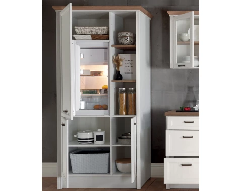Kuchyňská skříň pro vestavnou lednici, bělená pinie s dubovým dekorem, moderní venkovský styl. Kombinujte s dalšími prvky kolekce Jasmin.