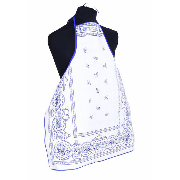 Zástěra v tradičním a oblíbeném českém dezénu cibulák je krásným a zároveň praktickým doplňkem. Je navržena pro každodenní využití ve vaší kuchyni – od vaření až po stolování.