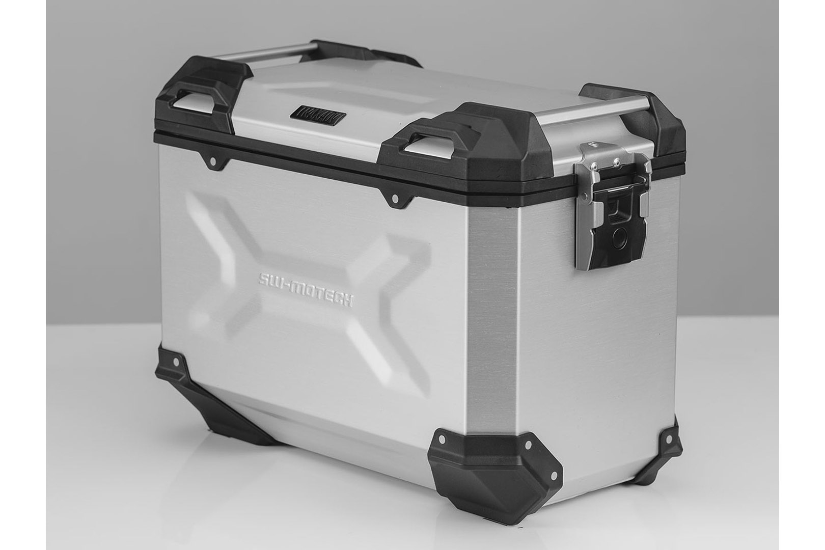 Jedná se o svařované hliníkové kufry s oddělávacím horním víkem v provedení stříbrný elox nebo černý práškový lak. Tyto povrchy zabraňují jakémukoli " špinění" obsahu kufrů. Kufry jsou vyrobeny z 1,5mm silného ,velmi odolného hliníkového plechu. Robotické svařování zaručuje absolutní odolnost proti vodě a prachu. Kufry mají robustní nerezové klipsny. Plastové rohy a těsnící rámeček jsou vyztuženy skelným vláknem. Na víku najdete čtyři upínací oka pro další náklad. Reliéfní protlaky na víku a tělu kufru celkově přispívají k větší tuhosti konstrukce kufrů. Kufry je možno použít na všechny nosiče SW-MOTECH EVO. Díky různým adapterům lze kufry také namontovat na nosiče jiných výrobců a to včetně originálních nosičů např. BMW. Příslušenství : vnitřní tašky,taška do víka kufru,taška na víko kufru,opěrka na top box atd. Rozměr: 49x28x37 cm Hmotnost: cca 5,5kg
