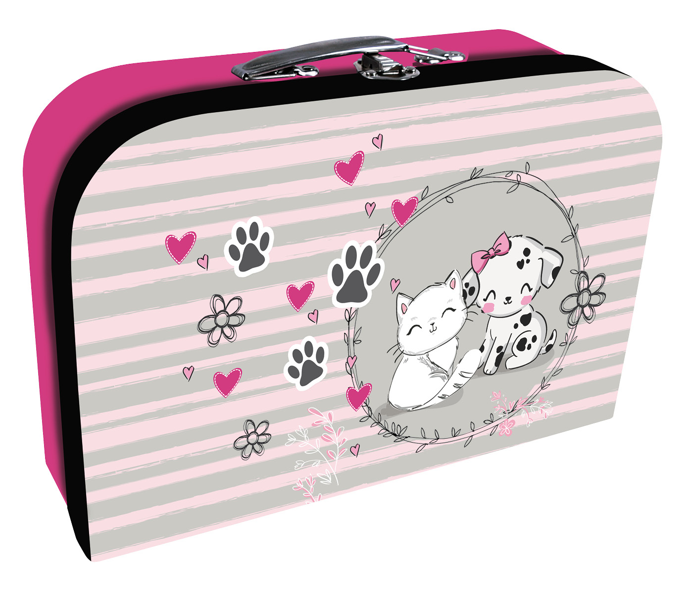 Dětské kufříky jsou vhodné pro uložení výtvarných potřeb ve škole, nebo i dalších pomůcek či hraček doma. Kufříky jsou velmi lehké, vyrobené z kvalitní lepenky a díky povrchové úpravě lze případnou nečistotu odstranit vlhkým hadříkem. Vnější strana je pokryta potištěným papírem s dětskými motivy sladěnými se školními aktovkami a batohy. Rozměr: 35 x 22,5 x 10 cm