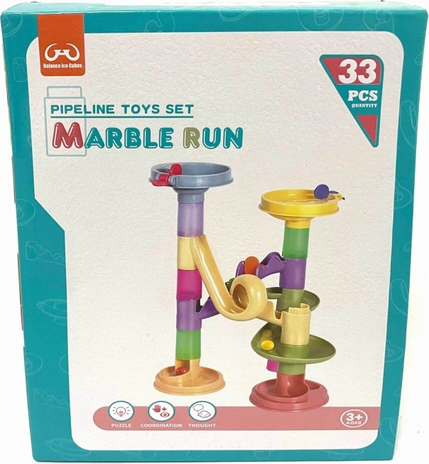 Zábavná kuličkodráha pro děti. Dráha se skládá ze 33 kousků. Výrobek je vhodný pro děti od 5 let.