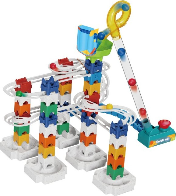 Sestav si vlastní kuličkovou dráhu z 81 dílků! Výrobek podporuje kreativitu a představivost. Vyrobeno z přírodních materiálů, 100% recyklovaný plast.