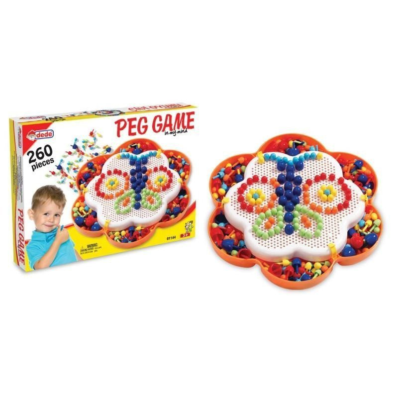 Kolíčková hra rozvíjí jemnou dětskou motoriku, tvořivost a fantazii. Obsah balení tvoří děrované hrací desky a 260 ks barevných kolíčků s hlavičkami různých barev, průměrů a tvarů. Pomocí těchto kolíčků, které se zasazují do otvorů v hrací desce, tvoří dětí různé obrázky nebo vzory. Vyrobeno z plastů špičkové kvality.Rozměr obalu obalu je 70x380x300