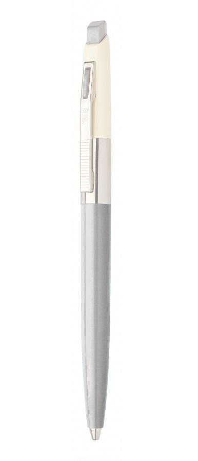 Kuličkové pero v pastelově šedé barvě s kovovým klipem, vycvakávacím mechanismem a silným hrotem 0,8 mm.