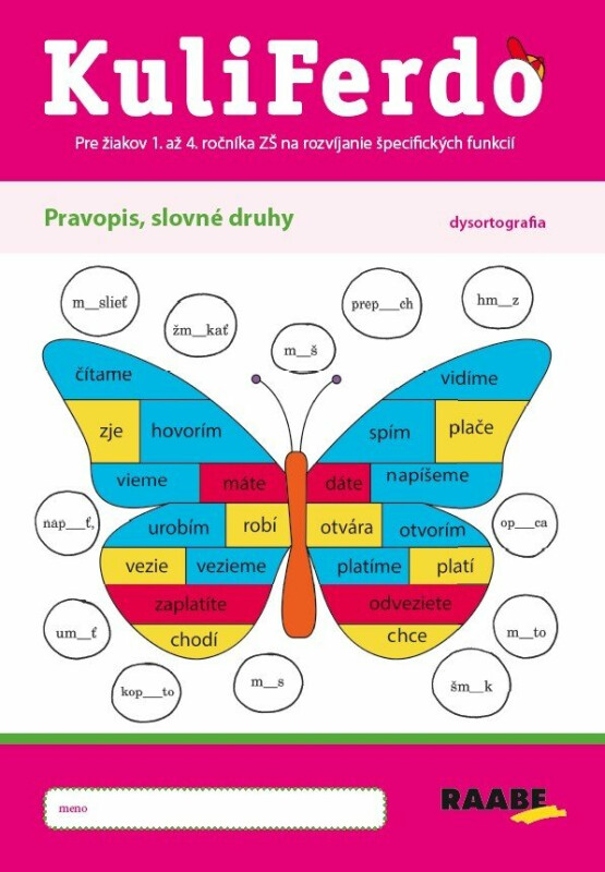 Pracovný zošit pre žiakov 1. až 4. ročníka ZŠ na rozvíjanie špecifických funkcií. Je prispôsobený špecifickým potrebám žiakov s dysortografiou, pomáha im prekonať konkrétne ťažkosti s pravopisom a gramatikou.