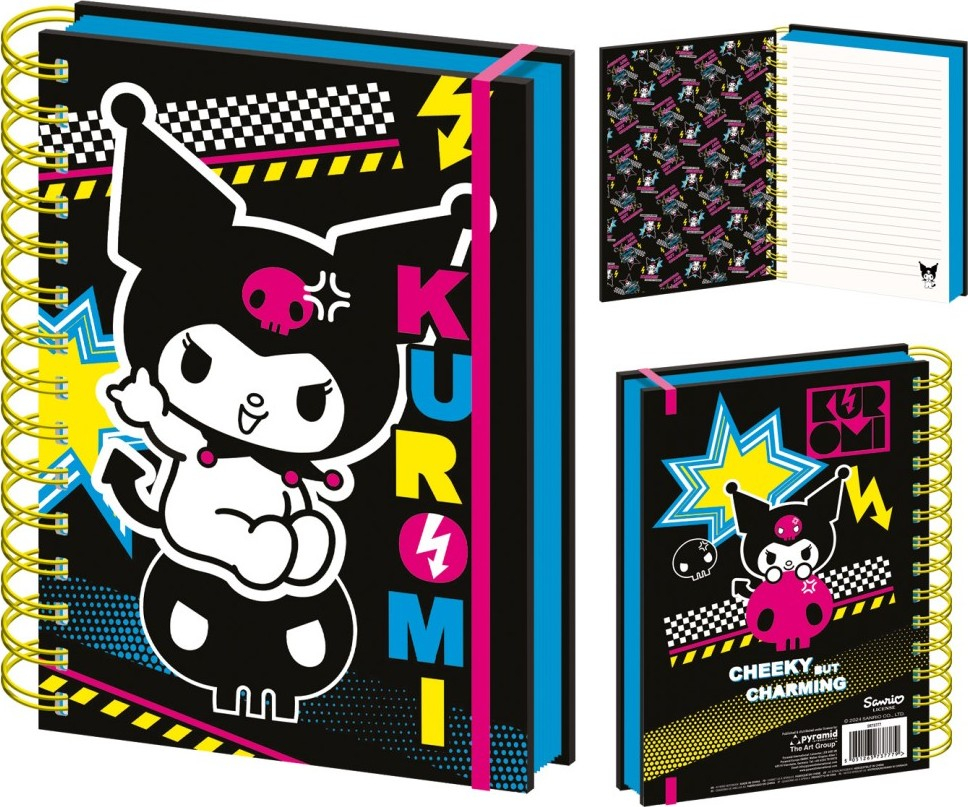 Kroužkový sešit A5 s motivem Kuromi. Sešit má 80 linkovaných listů.