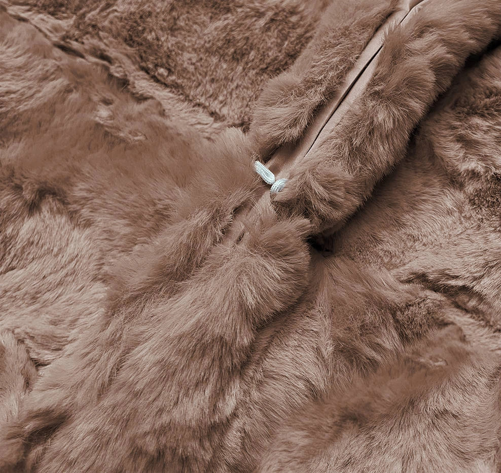 Hnědá dámská bunda-kožíšek s kapucí (br9741-12) odstíny hnědé S (36)