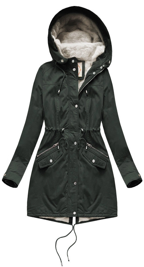 Věnujte prosím pozornost při výběru velikosti dle velikostní tabulky uvedené níže. Velikosti neodpovídají běžně nošené konfekci. Teplá zimní bunda parka s kapucí Bunda je zateplená syntetickou péřovou výplní a mechovitou kožešinou a má dvě kapsy. Model má kapuci olemovanou kožešinou. Zatímco kapuci není možné odepnout, kožešinu lemující kapuci odepnout lze. V pase modelu jsou stahující šňůrky se stopery. Všechny zipy a patentky mají stříbrnou barvu. Na koncích rukávů jsou skryté stahovací lemy. Složení: vrchní vrstva - 50 % polyester, 35 % nylon, 15 % bavlna; podšívka - 100 % polyester; kožešina - 100 % akryl.