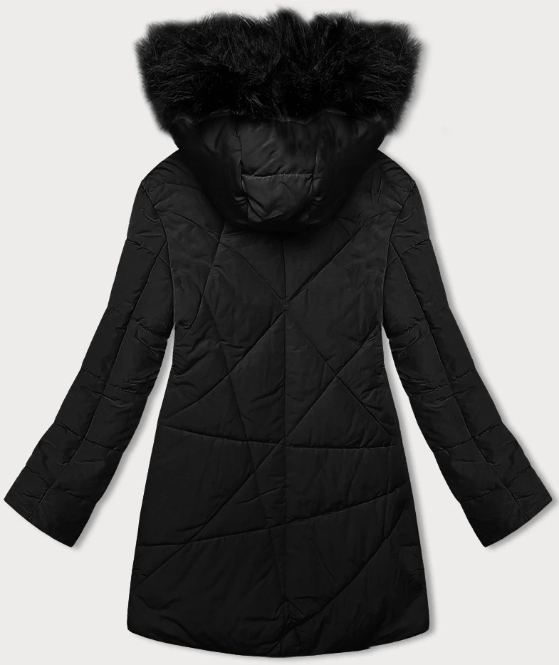 Černá dámská zimní bunda s kožešinovou podšívkou (V715) odstíny černé XL (42)