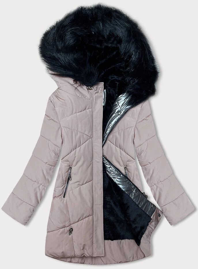 Dámská zimní bunda v barvě nude s kožešinovou podšívkou (V715) odstíny béžové XL (42)
