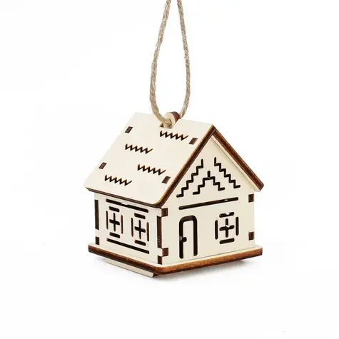 Kúzlo dreva Malý domeček s cik-cak vzory / LED svíčka / 3V baterie (KD3112)