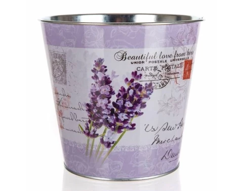 Dekorační plechový květináč 15 cm s motivem levandule se hodí do každého interiéru, do kterého vnese příjemnou venkovskou atmosféru.