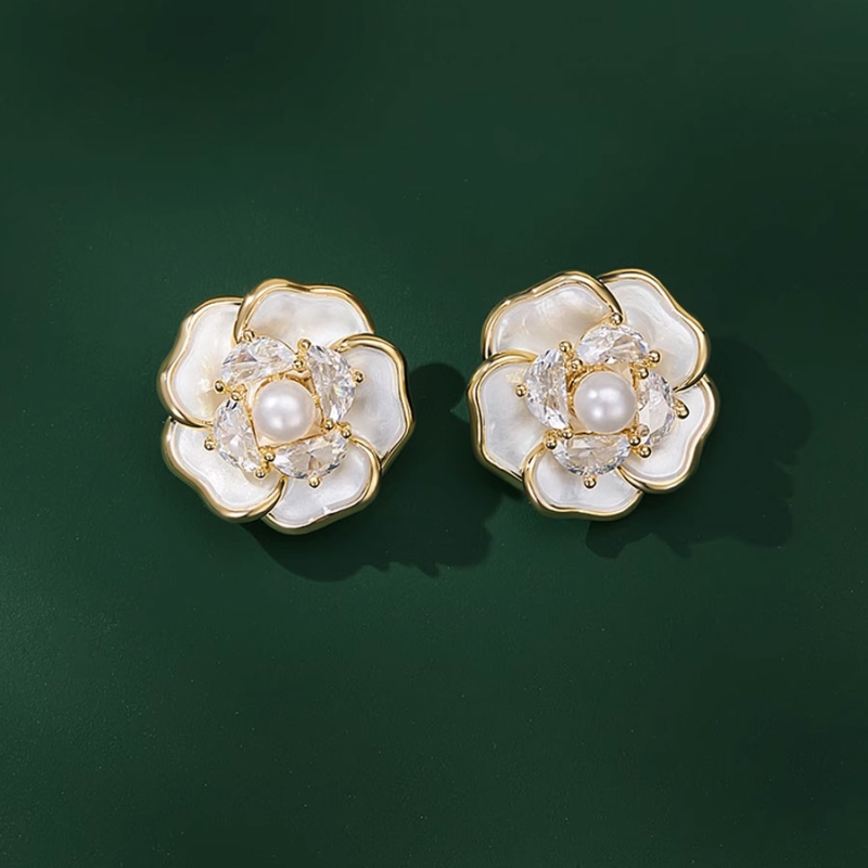 Tyto elegantní náušnice ve tvaru květu okouzlí jemností i smyslem pro detail. Kombinace zlatavých kontur, perleťově bílých lístků a třpytivých kamínků vytváří harmonický celek, který působí luxusně a zároveň romanticky.V jejich středu se vyjímá decentní perla obklopená broušenými zirkony, které podtrhují celkový šarm šperku. Díky zapínání na puzetu sedí náušnice bezpečně a pohodlně i při celodenním nošení.Jsou ideální volbou pro ženy, které mají rády klasickou eleganci s nádechem originality. Hodí se nejen k večerním šatům, ale i jako jemný akcent k jednoduchému outfitu. 💡Tip: Náušnice můžete darovat jako překvapení ke Dni matek, výročí nebo narozeninám – potěší každou milovnici květinových motivů.