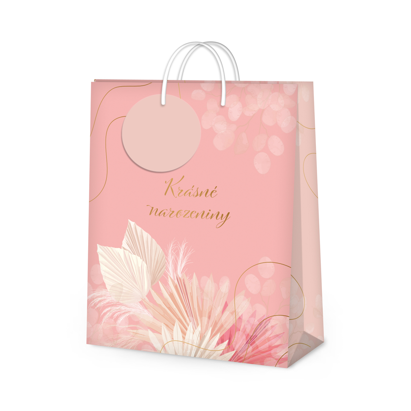 Luxusní papírová dárková taška se zlatou ražbou a něžným motivem je ideální na zabalení narozeninového dárku pro ženy. Rozměry: 26 × 12,7 × 32,4 cm