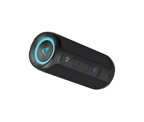 Přenosný bezdrátový reproduktor s Bluetooth 5.3, čistý a vyrovnaný zvuk, kompaktní design, dvoupásmové reproduktory, TWS funkce, možnost microSD, USB-A a AUX, podpora různých formátů, výkon 40 W, baterie 20 h, LED efekt, USB-C, voděodolnost IPX6.