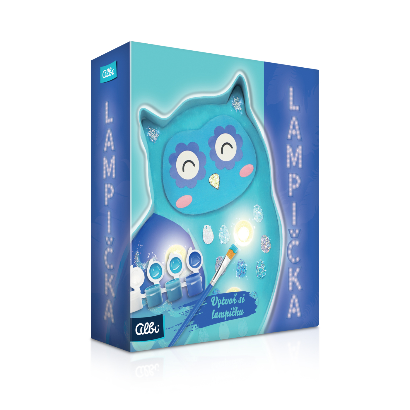DIY lampičku ve tvaru sovy si mohou děti vyzdobit podle svého. Součástí sady je i pohádkové leporelo. Lampička je bezdrátová, baterie nejsou součástí balení. Sada obsahuje: karton ve tvaru sovy, 4 kalíšky akrylových barev, 1 štětec, třpytkové lepidlo, svítící řetěz s LED diodami, 5 plastových baněk na žárovky, 9 oboustranně lepících polštářků, třpytivé oválky, kartonový základ pro tvář, 2 samolepkové oči, 2 samolepkové líce, 1 zlatá třpytková samolepka jako zobáček.