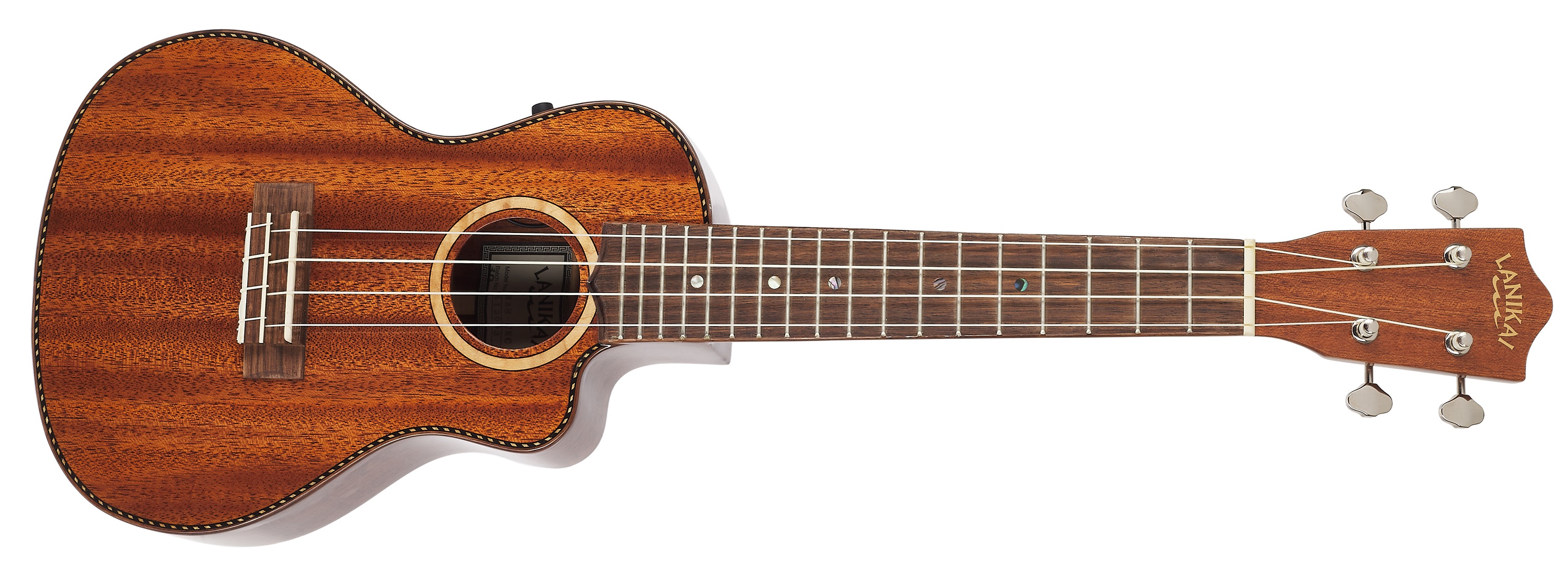 Elektroakustické ukulele Celomasivní tělo tohoto koncertního ukulele je zhotoveno z mahagonu, který poskytuje nástroji bohatý, vřelý, tón s dobrou projekcí zvuku a sustainem. Hmatník z ořechu je osazen osmnácti pražci, orientaci usnadňují poziční značky. Širší krk nástroje a nultý pražec nabízí pohodlný dohmat a pohyb na hmatníku, nultý pražec a sedlo z materiálu NuBone XB poskytují strunám dobrý sustain. Stabilitu ladění zaručují kvalitní otevřené mechaniky Deluxe Grover s chromovanými kolíky. Vizuální doj