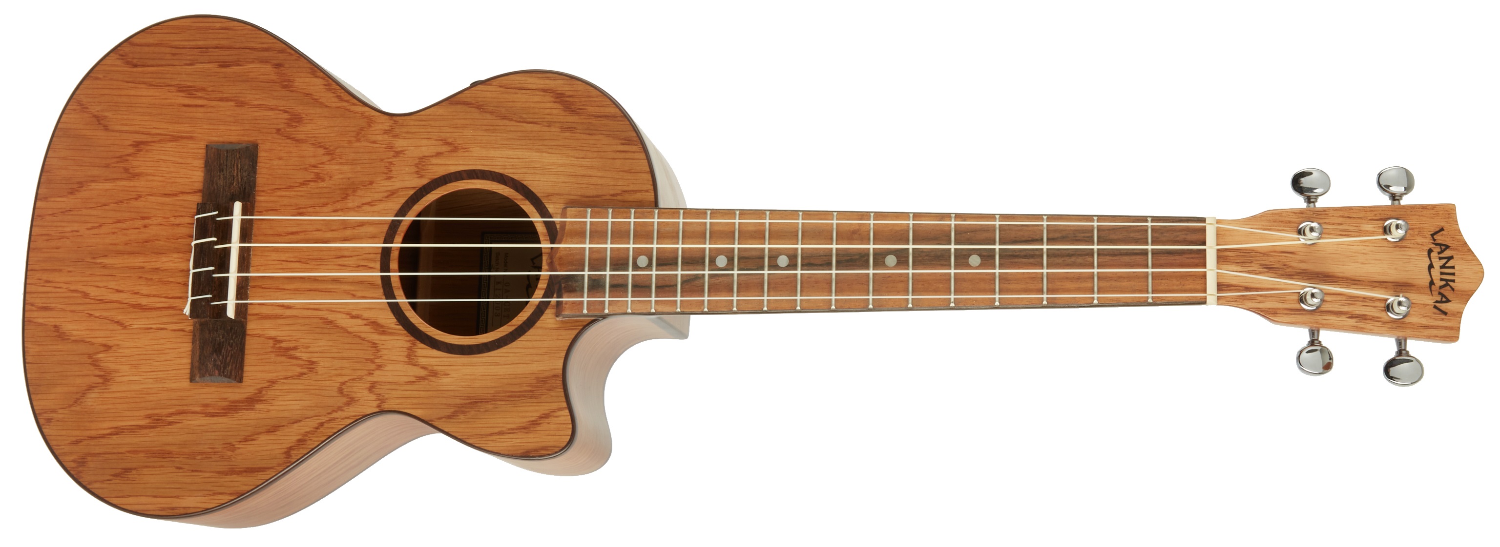 Elektroakustické ukulele Tělo tohoto tenorového ukulele je zhotoveno z překližovaného dubu, jehož kresba dřeva poskytuje nástroji naprosto exkluzivní vzhled. Hmatník z ořechu je osazen osmnácti pražci, orientaci usnadňují poziční značky. Širší krk nástroje a nultý pražec nabízí pohodlný dohmat a pohyb na hmatníku, nultý pražec a sedlo z materiálu NuBone XB poskytují strunám dobrý sustain. Stabilitu ladění zaručují kvalitní otevřené chromované mechaniky. Ukulele je dodáváno s obalem (gig bag) o tloušťce pols
