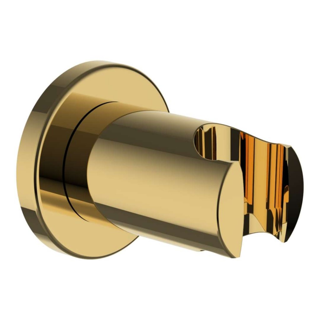 Nástěnný držák ruční sprchy pevný provedení: PVD lesklá zlatá s kruhovou krycí rozetou Ø 51,5 mm montáž přivrtáním do zdi