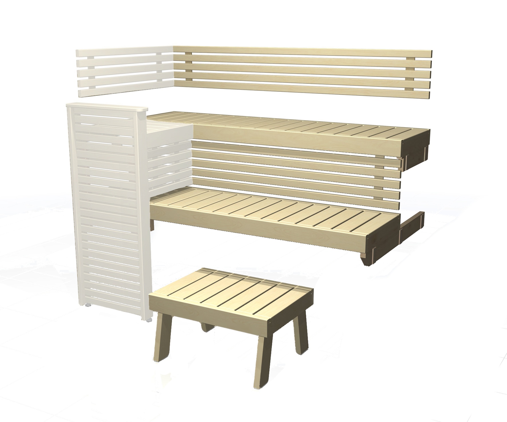 Lavicový set Formula se vyznačuje jednoduchými čistými liniemi a bude se jistě krásně vyjímat v každé sauně. Lavice jsou vyrobeny z osiky.
