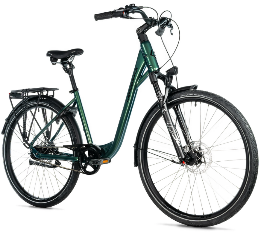 Zdarma dopravné, montáž, odborné seřízení a dárkový poukaz na nákup příslušenství 1.000,- Kč- kolo od nás je ZDARMA již kompletně seřízené a připravené k jízdě! ZÁRUKA NEJLEPŠÍ CENY! Nalezli jste někde lepší cenu? Napište si o ni! Městské kolo LEADER FOX ESCALANTE dámské, model 2025-2, barva green K dispozici je model v barevném provedení black/silver nebo rasberry a ve velikosti rámů 16,5" (XS) /18" (M) /20" (L). Vhodné velikosti rámů (podle výšky postavy): rám 16,5" (XS) - po výšku postavy do cca 165 cm rám 18" (M) - pro výšku postavy od cca 165 cm do cca 175 cm rám 20" (L) - pro výšku postavy od cca 175 cm do cca 185 cm Vydejte se do ulic s neodolatelným stylem na kole Escalante, které je navrženo pro ty, kdo chtějí jezdit městem s lehkostí a šarmem Jeho sofistikovaný design a precizní zpracování z něj dělají ideálního partnera pro každodenní cesty, ať už se chystáte na pracovní schůzku, kávu s přáteli, nebo jen tak objevovat krásy města. Escalante přináší nejen praktičnost, ale také nádech luxusu do každého šlápnutí. Jak vybrat vyhovující krosové kolo? Pár rad jak správně zvolit velikost, na co si dát při výběru pozor a mnohem více naleznete v naší poradně ZDE! Kola Leader Fox se montují v nové montážní hale v Českých Budějovicích a splňují přísné normy EU. Technická specifikace: Modelový rok: 2025Rám: ALUMINIUM SUPERLITE, DOUBLE BUTTEDVelikost rámu: 16,5" (XS) /18" (M) /20" (L)Vidlice: AIR, ZDVIH 100mmPřehazovačka / měnič: SHIMANO CUES RD-U4020Přesmykač: Řazení: SHIMANO NEXUS, SL-C6000, 8 RYCHLOSTÍPřevodník: Brzda přední: SHIMANO CUES U8000Brzda zadní: SHIMANO CUES U8000Středové složení: Kazeta / vícekolečko: Řetěz: Představec: Sedlovka: Přední náboj: SHIMANO DH-T4050-1DZadní náboj: SHIMANO SG-C6001-8D, 8 RYCHLOSTÍRáfek přední: 28" ŠÍŘKA 40mmRáfek zadní: 28" ŠÍŘKA 40mmPlášť přední: CST 28x1,75Plášť zadní: CST 28x1,75Počet rychlostí: 27Hmotnost: 19 kgNosnost: 120 kgPoznámka: stojan, baltníky, zámek, zadní nosič a zvonek součástí kola Změna technické specifikace vyhrazena.