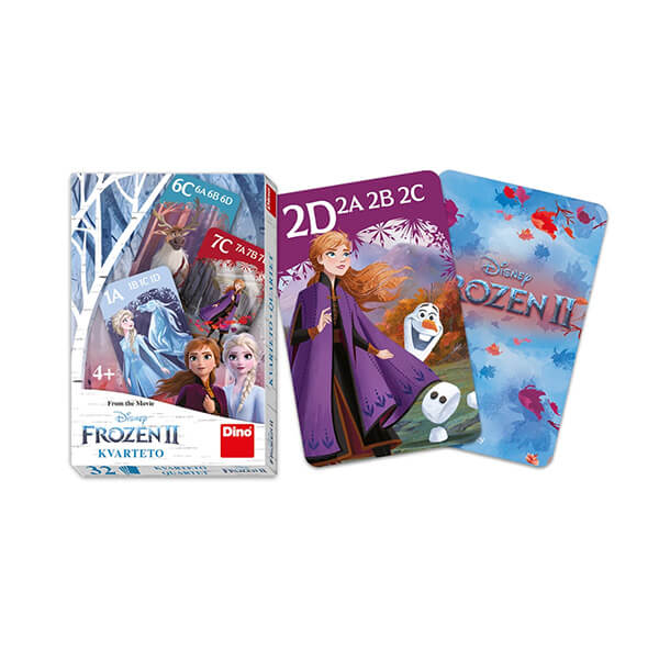 Karetní hra Kvarteto - Frozen II (Ledové království II) s motivy druhého dílu oblíbeného animovaného filmu jsou ideálním dárkem pro milovníky této pohádky. Rychlá a dynamická hra s jednoduchými pravidly pro každého. Balení obsahuje: 32 karet v papírové krabičce a pravidla.
