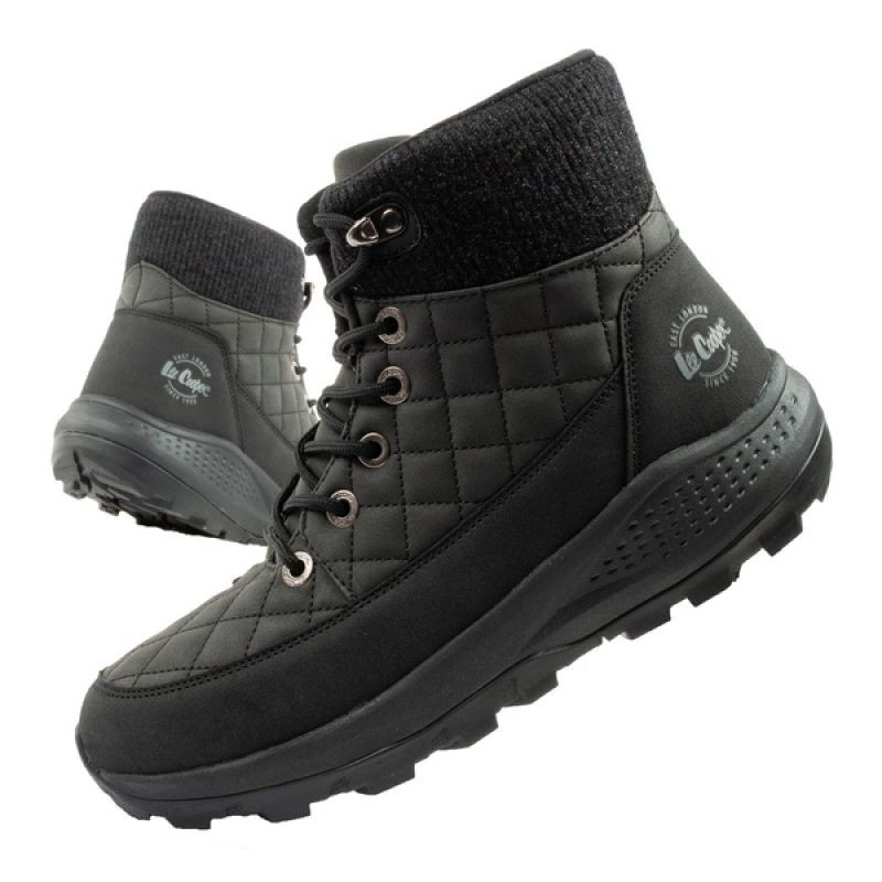 Lee Cooper dámská zimní trekingová sportovní obuv zateplená černá eko kůžeZateplené zimní boty pro ženy.Svršek je vyroben z nejkvalitnější ekologické kůže a textilních materiálů, které je třeba před použitím naimpregnovat, aby boty měly zvýšenou ochranu proti vlhkosti.Měkká vnitřní izolace účinně chrání před chladem, zatímco zvýšený svršek stabilizuje kotník a zvyšuje pohodlí při nošení.Silná, plně odpružená podrážka zajišťuje pohodlí při každé chůzi.Systém šněrování použitý v obuvi zajišťuje dokonalé přizpůsobení noze.Dokonalá obuv pro každý módní outfit.Trekingová obuv od značky Lee Cooper.Univerzální design obuvi Lee Cooper se hodí k ležérnímu i sportovnímu oblečení.Jedná se o obuv, která se osvědčí v podzimních a zimních podmínkách a zaručuje teplo, pohodlí a módní vzhled.