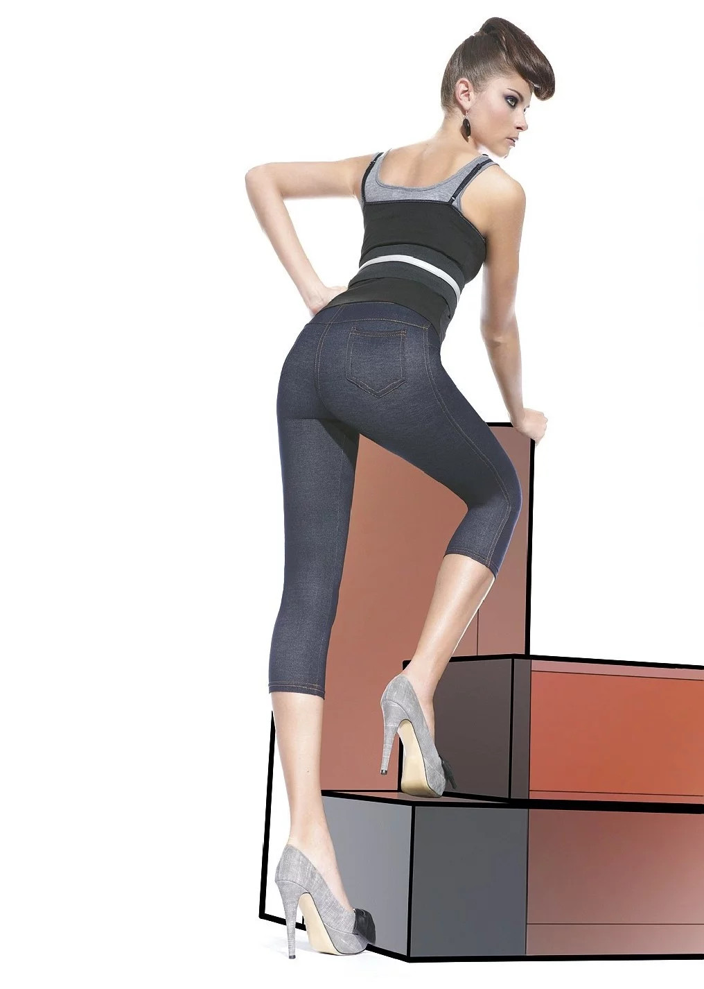 Blanka short - dámské luxusní tříčtvrteční legíny 200 den. Příjemný elastický materiál - viskóza. Velmi pohodlné. Imitace džínoviny. Vzadu jsou kapsy. Vpředu pouze imitace kapes. Legíny jsou vyrobeny z měkkého lesklého materiálu. Perfektně modelují postavu. Materiál: 80 % viskóza, 15 % polyester, 5 % elastan