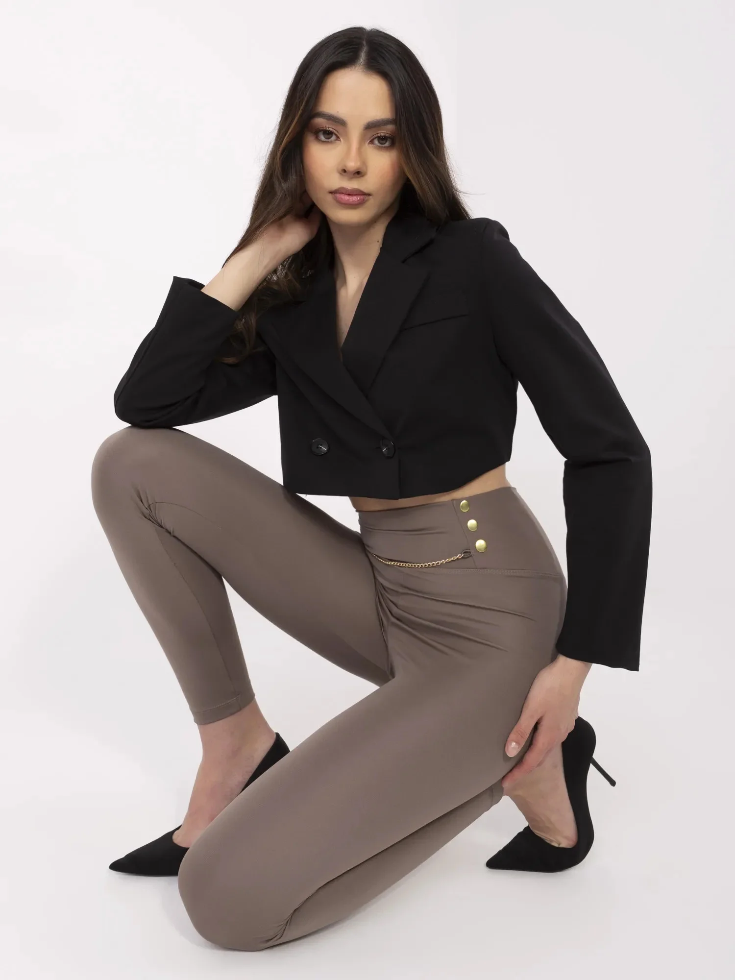 Modelka má na sobě velikost S. Rozměry modelky: výška 175 cm, prsa 90 cm, pas 66 cm, boky 94 cm. Rozměry legín velikosti S měřené na plocho: šířka v pase - 29 cm (na plocho), šířka v pase - 52 cm (natažené), výška v pase - 32 cm, šířka v pase - 36 (na plocho), šířka v pase - 62 (natažené), celková délka - 98 cm. Mezinárodní velikostVýškaObvod pasuObvod bokůVnější délka nohavicDélka vnitřní nohaviceS36160-16872-80908774M38162-17278-86949075L40164-17484-901029476XL42166-17888-961069877