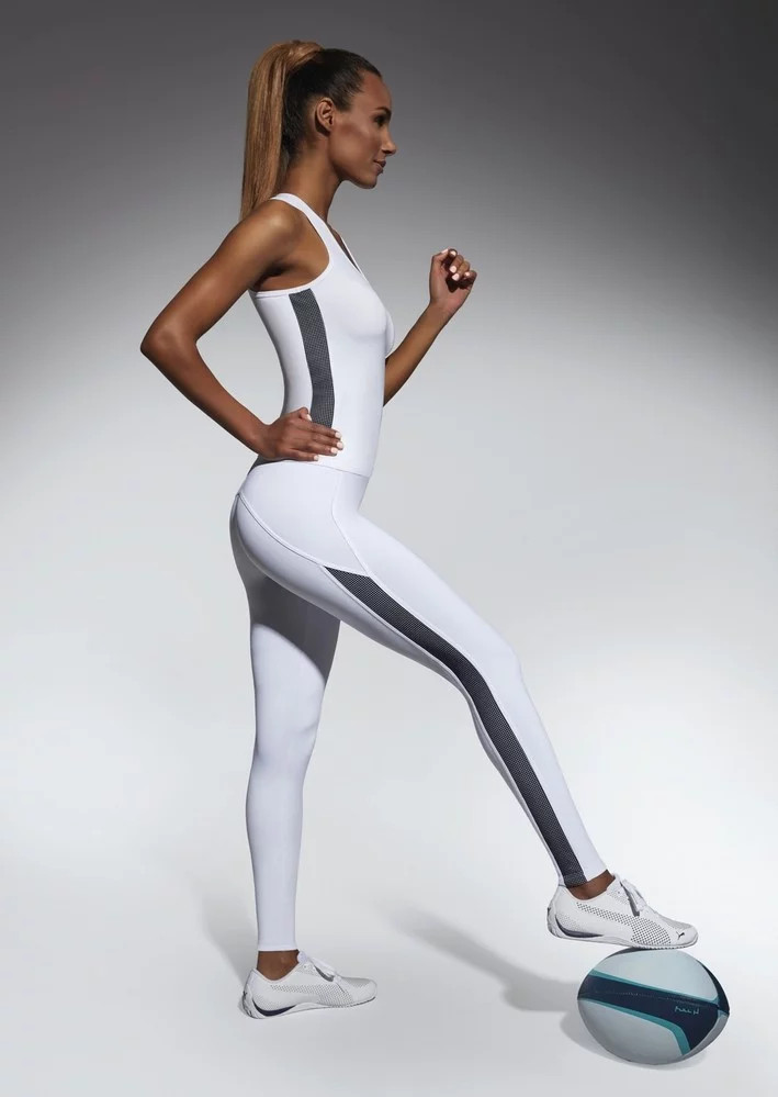 Sportovní legíny Imagin Sportovní legíny z materiálu PLUSH-ZERO (PZ) ARCHROMA. Tento materiál má funkční vlastnosti, a proto je označován jako úchvatný, díky své speciální úpravě struktury chemických vláken má ARCHROMA výrazně zlepšené vlastnosti proudění vzduchu a odstraňování vlhkosti. S těmito legíny můžete být elegantní i při sportu. Na bocích mají všitý vzorovaný pruh. Perfektně modeluje postavu. Materiálové složení: 85% polyester, 15% elastan