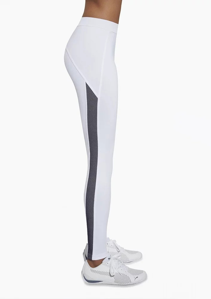 Sportovní legíny Imagin Sportovní legíny z materiálu PLUSH-ZERO (PZ) ARCHROMA. Tento materiál má funkční vlastnosti, a proto je označován jako úchvatný, díky své speciální úpravě struktury chemických vláken má ARCHROMA výrazně zlepšené vlastnosti proudění vzduchu a odstraňování vlhkosti. S těmito legíny můžete být elegantní i při sportu. Na bocích mají všitý vzorovaný pruh. Perfektně modeluje postavu. Materiálové složení: 85% polyester, 15% elastan