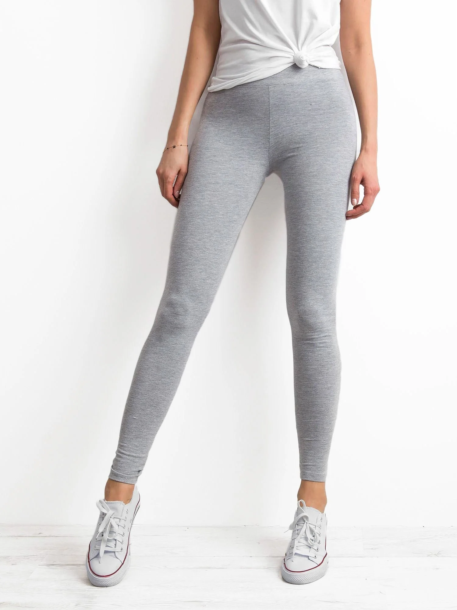 Grey Basic legíny Hladké bavlněné legíny mají zvláštní místo v šatníku každé ženy. Ženy je milují pro jejich pohodlí a všestrannost, a proto mají rády několik párů, aby mohly střídat různé barvy. Mezi ženami jsou nejoblíbenější dlouhé legíny, takže náš model sahá dokonale ke kotníkům. Je vyrobena z měkké směsi materiálů, takže je příjemná na dotek, prodyšná a dostatečně pružná. Tyto dámské legíny dokonale padnou každé postavě, jsou velmi pohodlné na nošení a neprosvítají. Navíc neztrácejí svůj původní střih a všitý elastický pas umožňuje ještě lepší přizpůsobení konkrétní postavě. Základní legíny můžete nosit s módními teniskami, botami na podpatku a stylovými tričky a mikinami pro ženy z naší online kolekce. Bez těchto jednobarevných dámských legín si nelze představit každodenní vzhled. Můžete je nosit doslova kdekoli. Stejně dobře se hodí jak do práce, tak do posilovny nebo na venkovní aktivity. Kvalitní bavlna použitá u prezentovaného modelu zajišťuje správnou úroveň termoregulace a nedráždí pokožku. Je ideální volbou pro dámy, které se chtějí cítit stylově a zároveň velmi pohodlně při každodenních aktivitách. Univerzální odstín základních legín znamená, že se budou hodit jak k typicky ležérním, tak k elegantnějším outfitům. Díky širokému výběru módních legín v našem internetovém obchodě si každá módní dáma jistě najde ten správný model. Kromě kalhot na míru v nejmódnějších odstínech sezóny máme v našem pravidelném výprodeji také mikiny, sukně a trička, s nimiž bude vytvoření úspěšného každodenního vzhledu hračkou. Neztrácejte čas marným hledáním! Najděte si nyní zajímavý model a vytvářejte kombinace, které vám dodají módní sebevědomí. Využijte atraktivní cenové nabídky a přesvědčte se, že úspěšné nákupy oblečení nemusí zruinovat váš domácí rozpočet. složení látky: 90 % bavlna, 10 % elastan způsob praní: praní v pračce na 30 °C Modelka má na sobě velikost S. Rozměry modelky: výška 175 cm, prsa 84 cm, pas 65 cm, boky 92 cm. Mezinárodní velikostVýškaObvod pasuObvod bokůVnější délka nohaviceDélka vnitřní nohaviceXS34156-16466-74868473S36160-16872-80908774M38162-17278-86949075L40164-17484-901029476XL42166-17888-9610698772XL44168-18092-10011010278