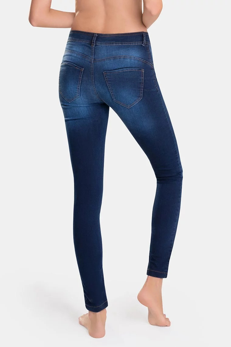 Dámské džíny. Materiál JEANS ručně stíraný a strojově řízený je plně krycí, flexibilní, modelující siluetu. Materiál JEANS je vyroben z renomovaných výrobců příze s mezinárodní certifikací Oeko-Tex. Materiálové složení: 70% bavlna, 25% polyester, 5% lycra